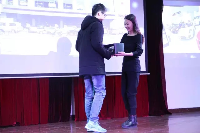 校企合作企业上海尊鼎名车汇也带来了“尊鼎特别奖”价值千元的宝马车模,一起庆祝这欢乐的时光。尊鼎名车汇青年骨干,也是机电系12级分团委书记赵振业学长,12级分团委生活部部长马金凤学姐为获得“尊鼎特别奖”的幸运同学颁奖。整场晚会精彩不断,欢呼声一浪高过一浪。在15级分团委学生干部合唱的一首《稻香》中,本场晚会划上了圆满的句号。迎新晚会的成功举办,充分展示了我系学生的风采和活力,更彰显了机电系学生的凝聚力。青春如歌,我们的歌声中饱含着铿锵自信和对未来的无限希望,绽放着青春与梦想的光芒。