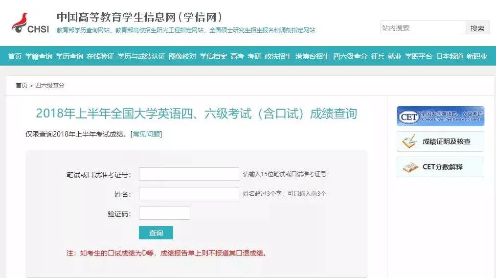 中国高等教育学生信息网: https://www.chsi.com.cn/cet/
