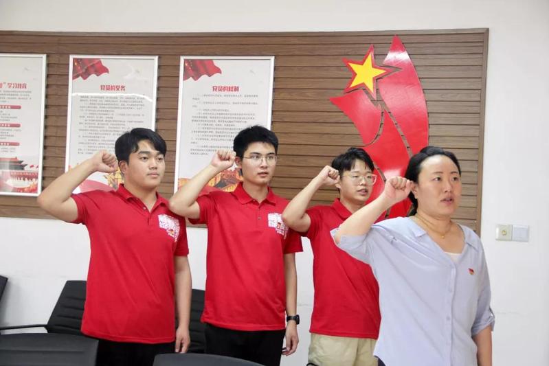 入党宣誓,是每一位党员的必经之路,其意义不止于一个简单的动作,而在于宣誓忠诚、牢记使命、坚定信念,让红色基因永远传承。在咸菁老师的带领下三位2019届毕业生党员面向党旗、庄严宣誓。