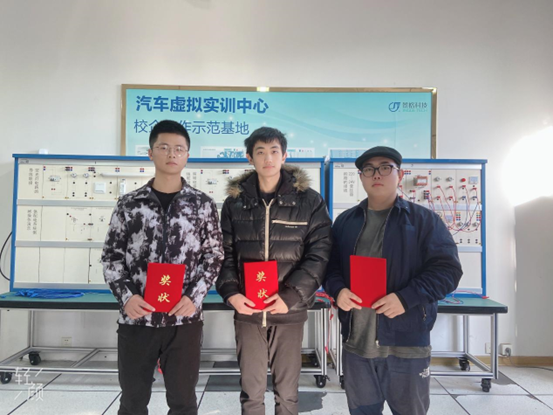 我系新能源汽车技术专业的曹文虎、徐铭祺、李云风三名同学在机电系汽车专业主任邱伟明和金惠云两位老师的带领下,指导老师宋宝剑认真负责的指导下,首次参加新形式下汽车虚拟故障诊断与维修技能比赛,并荣获一等奖一名、二等奖两名的好成绩。