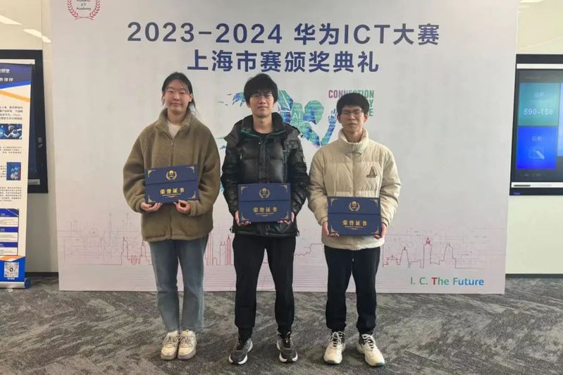 2023年12月28日,华为ICT大赛2023-2024中国区上海市实践赛决赛结果公布,朱天缘、张坤宝同学喜获高职网络赛道一等奖,祝婉怡同学喜获高职网络赛道二等奖,三位同学均成功晋级高职网络赛道全国总决赛。